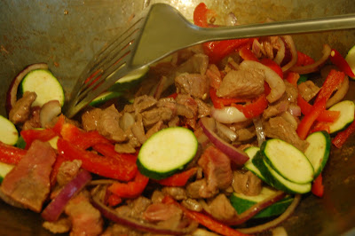 - Add your prepared bell pepper and zucchini. Stir-fry for another five minutes or so.